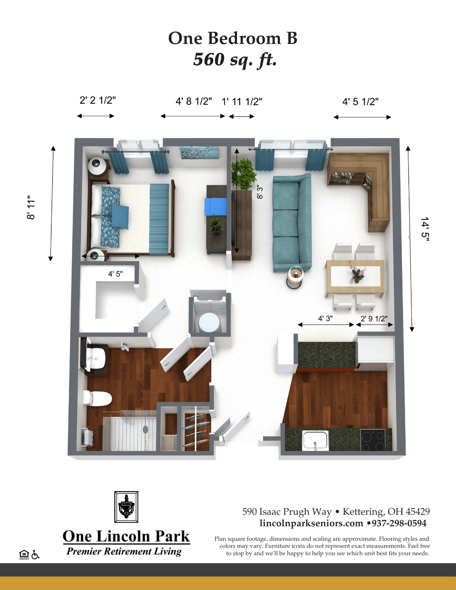 We invite you to explore your new home at One Lincoln Park by visiting us at 590 Isaac Prugh Way, Kettering, OH 45429. Our team is eager to guide you through our apartments for 55+ seniors. Reach out to us at (937) 298-0594 or via email at sales@olp.life to schedule your visit or ask about the unique features of each floor plan.